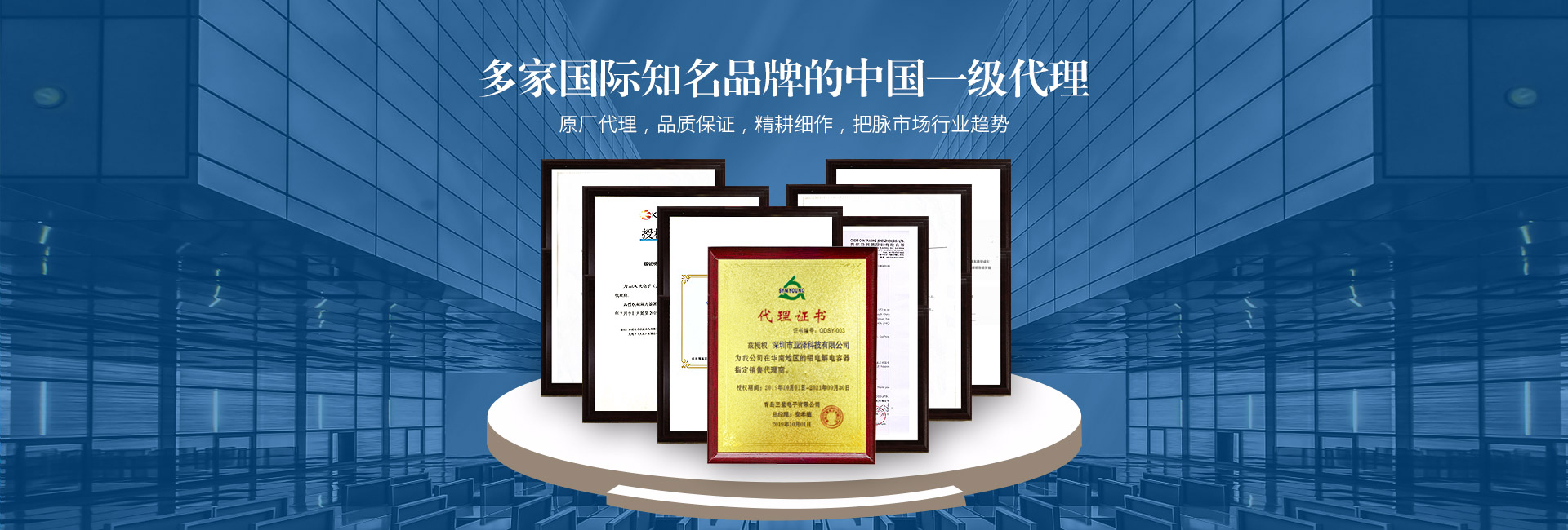 日本黑金剛(NIPPON CHEMI-CON)電容、韓國三瑩(SAMYOUNG)電容、東陽光(HEC)電容、凱美(KAMCAP)超級電容、成鎬薄膜電容、泰容薄膜電容、貝特保險管、大毅電阻、天二特殊電阻、CROWN散熱風(fēng)扇等多家國內(nèi)外知名品牌一級代理及華南區(qū)域總代理授權(quán)。